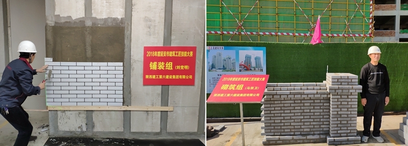 本次延安市建筑工程質(zhì)量安全提升行動暨揚塵治理現(xiàn)場觀摩會分為延安市建筑工程施工現(xiàn)場觀摩和延安市建筑工匠技能比武競賽兩個部分。在延安市建筑工程質(zhì)量安全提升行動暨揚塵治理現(xiàn)場觀摩會中,我集團延安新區(qū)海麗金爵項目從延安市眾多優(yōu)秀的建筑工程中脫穎而出,項目部獲得了“延安市建設工程質(zhì)量安全生產(chǎn)先進集體”,項目經(jīng)理趙剛同志被評為“2018年度延安市建設工程質(zhì)量安全生產(chǎn)先進個人”,項目鋪裝工人劉黨明獲得“延安市建筑工匠技能比武競賽”鋪裝組一等獎,項目砌筑工人馬張衛(wèi)獲得“延安市建筑工匠技能比武競賽”砌筑組三等獎。