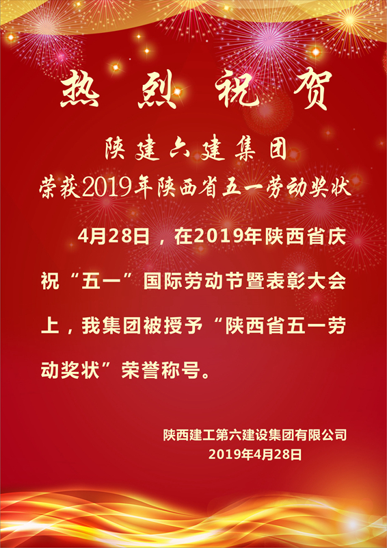 喜報——陜建六建集團榮獲2019年陜西省五一勞動獎狀