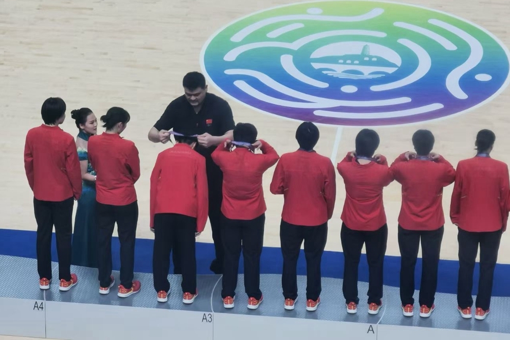 十四運(yùn)籃球項(xiàng)目(渭南賽區(qū))競(jìng)委會(huì)執(zhí)行主任、中國(guó)籃球協(xié)會(huì)主席姚明在現(xiàn)場(chǎng)頒獎(jiǎng)