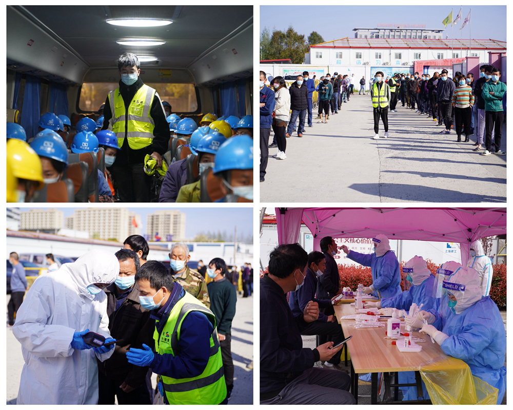 隨著疫情形勢(shì)日益嚴(yán)峻,兩個(gè)項(xiàng)目全都按下“暫停鍵”,項(xiàng)目駐地緊急全面封閉管制。指揮部緊盯疫情發(fā)展動(dòng)態(tài),迅速組建“黨員先鋒隊(duì)”、“青年突擊隊(duì)”,宣貫防疫工作要求,執(zhí)行防疫工作計(jì)劃。項(xiàng)目管理人員對(duì)生活區(qū)、辦公區(qū)、施工區(qū)進(jìn)行嚴(yán)格管控,排班巡查駐地出入口,做到非必要不出門(mén),出門(mén)戴口罩等;每日專(zhuān)人負(fù)責(zé)保證消殺零死角;落實(shí)進(jìn)出人員掃碼測(cè)溫登記;專(zhuān)車(chē)接送勞務(wù)人員上下班,防止交叉感染;組織全員進(jìn)行多次新冠抗原自檢、核酸檢測(cè);啟用新冠疫情臨時(shí)觀測(cè)點(diǎn)、隔離房,全力阻擊新冠病毒。期間,項(xiàng)目部全體管理人員無(wú)私奉獻(xiàn)、勇毅擔(dān)當(dāng),堅(jiān)守在抗疫一線(xiàn)。