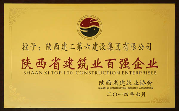 集團(tuán)公司榮獲的陜西省建筑業(yè)百強(qiáng)企業(yè)獎(jiǎng)牌