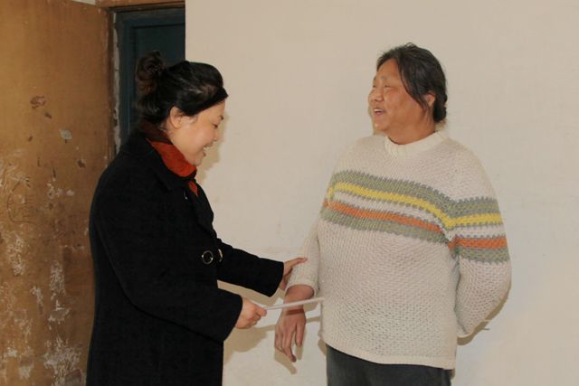 集團(tuán)公司工會主席白曉寧向困難職工張春桃發(fā)放慰問金
