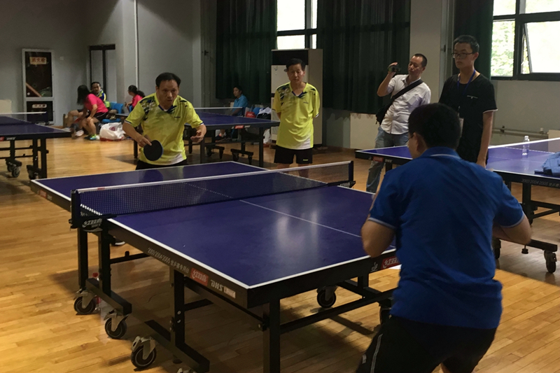 乒乓球男單亞軍李忠洲(黃衣)在比賽中